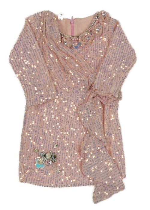 Světlerůžové slavnostní síťované flitrové šaty s květy