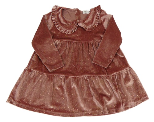 Starorůžové sametové třpytivé šaty s límečkem F&F