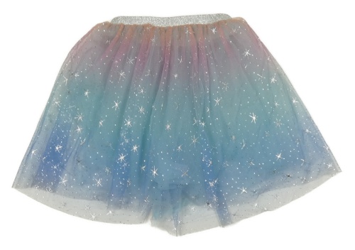 Modro-růžovo-stříbrná tylová sukně s hvězdičkami