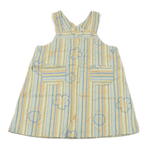 Žluto-modro-oranžové pruhované riflové laclové šaty s kytičkami