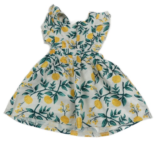 Bílo-zeleno-žluté květované šaty s volánky