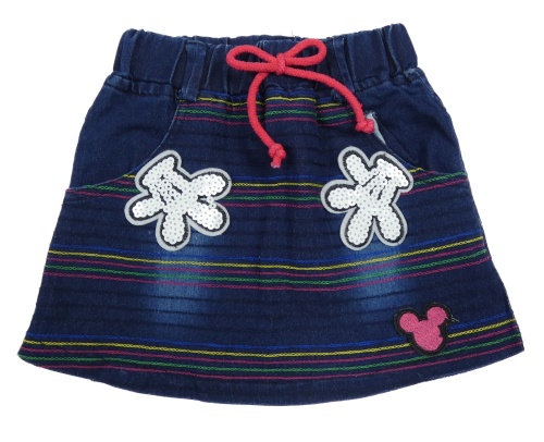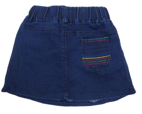 Tmavomodrá riflová sukně s barevnými proužky a nášivkami
