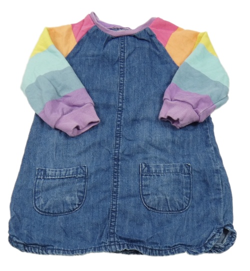 Tmavomodro-barevné riflovo/teplákové šaty pruhovanými rukávy Next