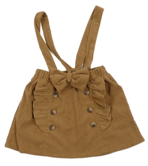 Hnědá žebrovaná sukně s mašlí s knoflíky a kšandami Shein