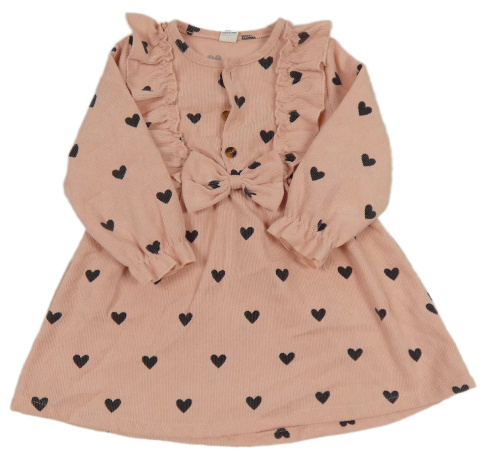 Světlerůžové manšestrové šaty se srdíčky a volánky Shein