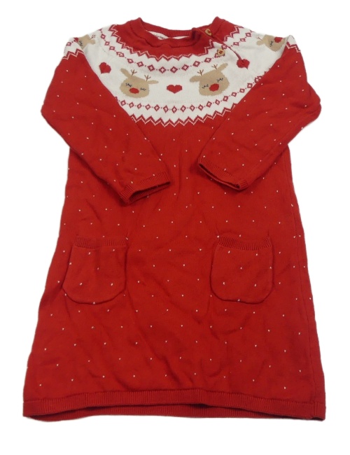Červeno-bílé puntíkaté svetrové šaty se soby C&A
