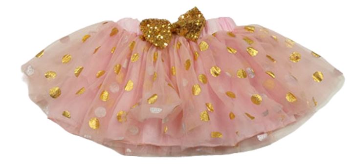 Světlerůžovo-zlatá puntíkatá tylová sukně s mašlí s flitry