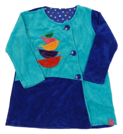 Tyrkysovo-safírové sametové propínací šaty s ptáčky