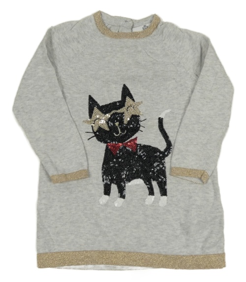 Světlešedo-zlaté melírované svetrové šaty s kočičkou z flitrů M&S