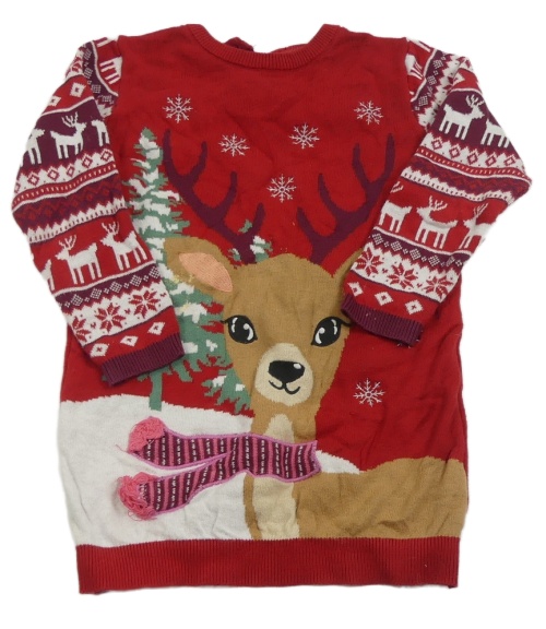 Červeno-bílé svetrové šaty se sobem a norským vzorem Next