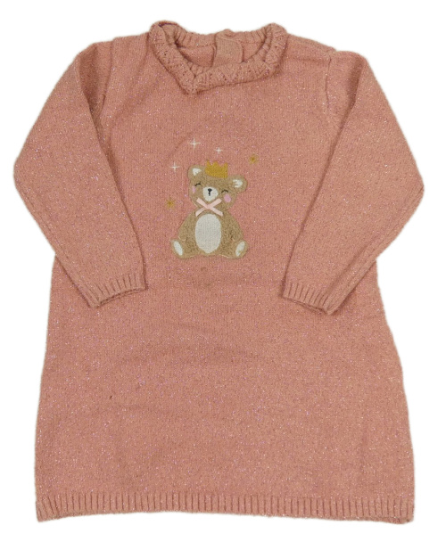 Růžové třpytivé svetrové šaty s medvídkem Nutmeg
