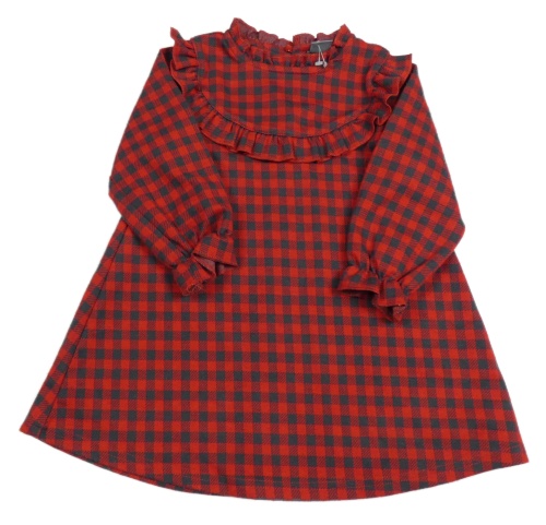 Červeno-tmavošedé kostkované šaty s volánky Next