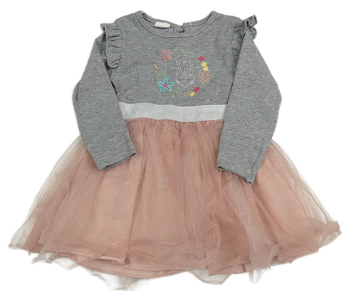Šedo-starorůžové žebrovano/tylové šaty s květy a volánky BEBETOLIA