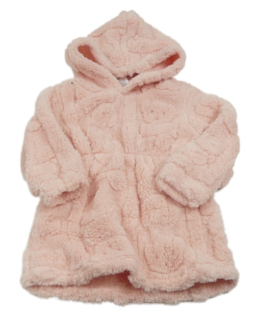 Světlerůžové chlupaté šaty s kapucí