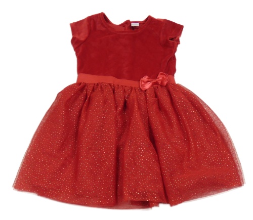 Červené plyšovo/tylové šaty s mašlí a zlatými puntíky dopodopo