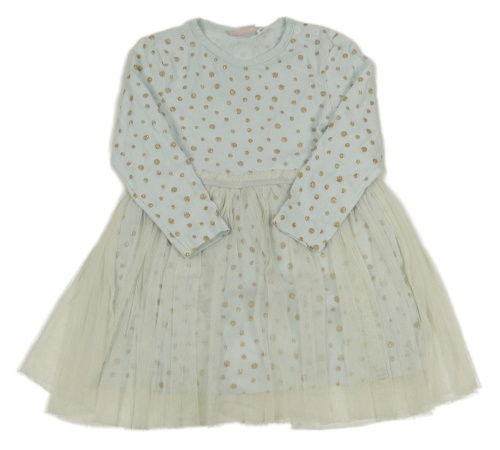 Světlemodré puntíkaté bavlněno/tylové šaty Liegelind
