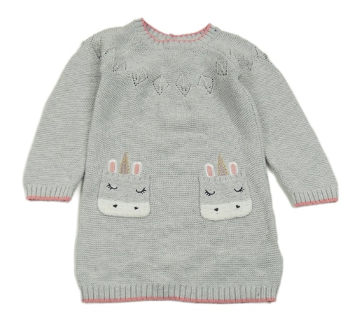 Šedé pletené šaty s dírkovaným vzorem a jednorožci Primark