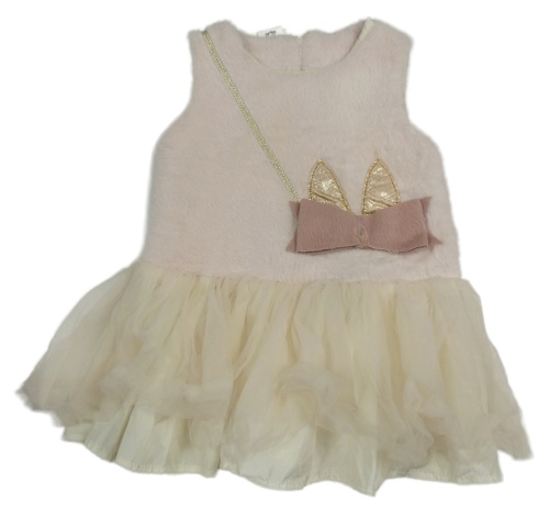 Světlerůžovo-smetanové kožešinovo/tylové šaty s mašlí a oušky