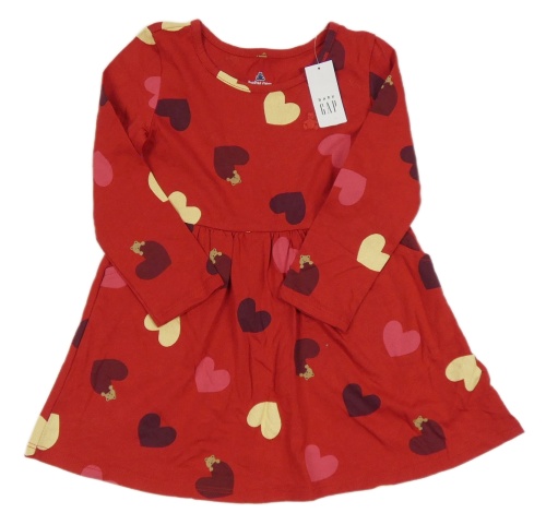 Nové - Červené bavlněné šaty se srdíčky GAP