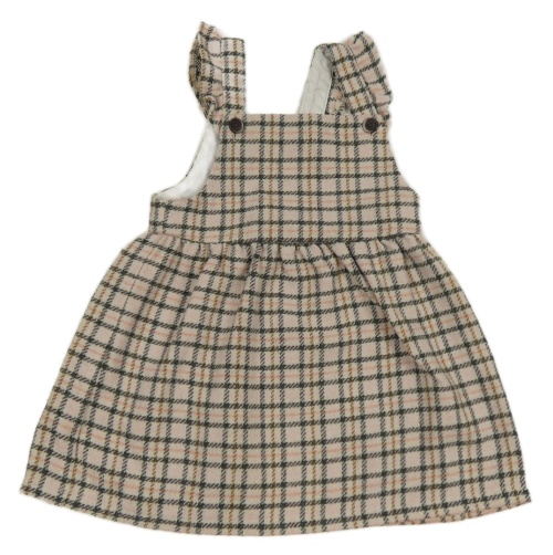 Smetanovo-černo-hnědo-světlerůžové kostkované vlněné šaty s volánky F&F