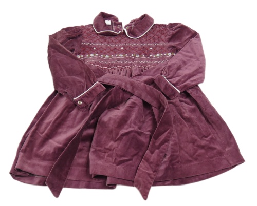 Vínové sametové šaty s límečkem a páskem