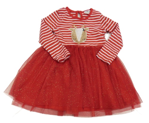 Červeno-bílé pruhované šaty se sobem a tylovou sukní
