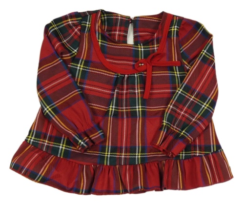 Červeno-kostkovaná šatová tunika s mašlí