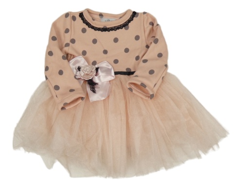 Růžové teplákovo/tylové šaty s puntíky a mašlí