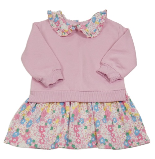 Světlerůžové teplákovo/mačkané šaty s květy a límečkem St. Bernard