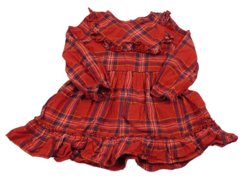 Červeno-tmavomodro-bílé kostkované třpytivé šaty s volánky F&F
