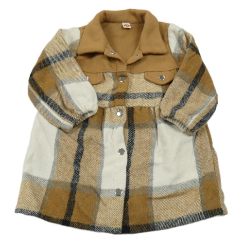 Hnědo-bílo-černé kostkované flaušové propínací šaty s límečkem SHEIN