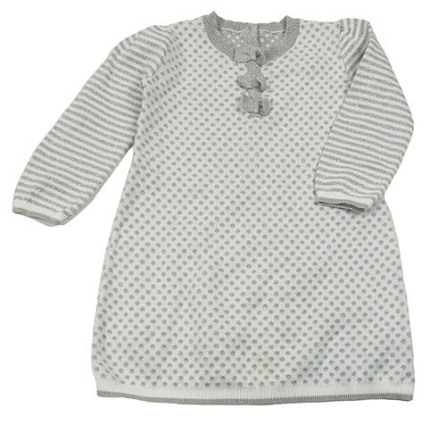 Bílo-šedé puntíkaté třpytivé svetrové šaty s mašlemi George