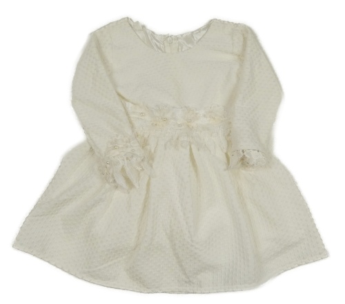 Smetanové vzorované slavnostní šaty s květy s perlami a krajkou