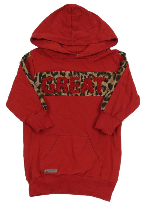 Červené teplákové šaty se vzorem, nápisem a kapucí
