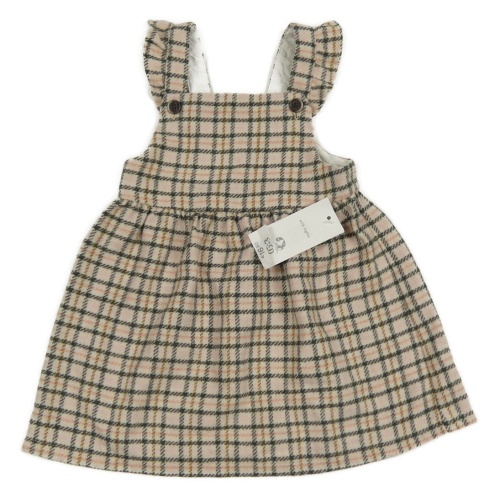 Nové - Smetanovo-šedo-růžové kostkované vlněné šaty F&F