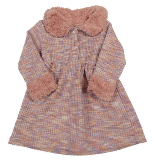 Růžovo-fialové vzorované svetrové šaty s límečkem