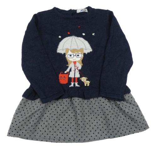 Tmavomodro-šedé vlněno/plátěné šaty s dívkou