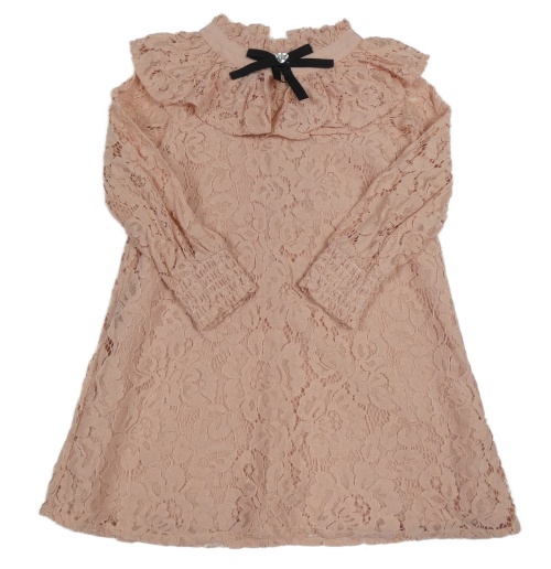 Růžové krajkové šaty s volánem a mašlí River Island