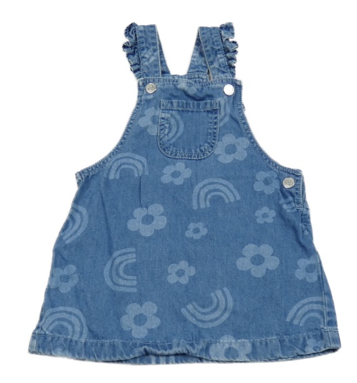 Modré riflové šaty s květy a duhami a kapsou a volánky F&F