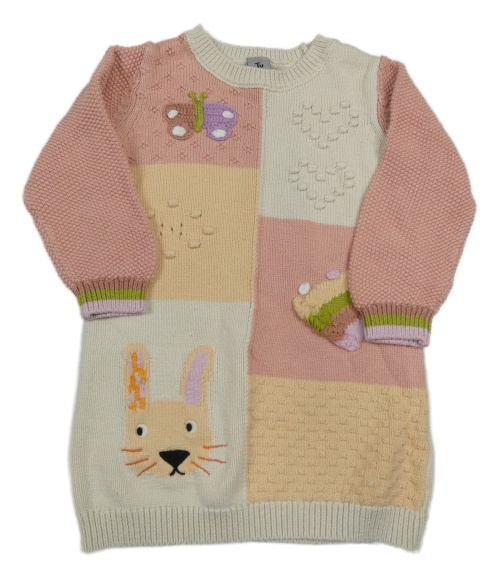 Růžovo-béžovo-smetanové pletené šaty s obrázky Tu