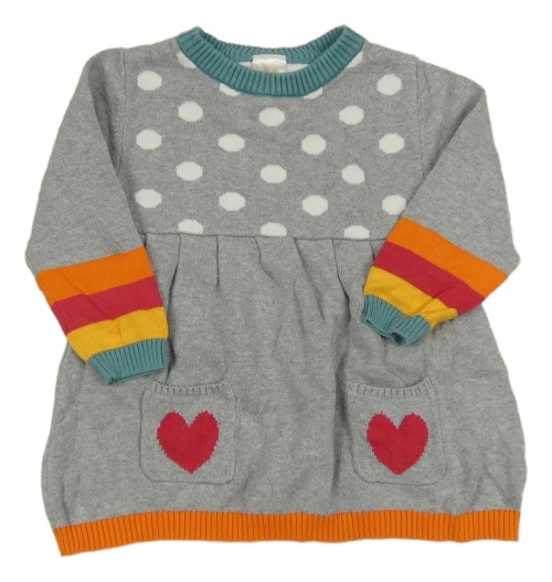 Šedo-oranžovo-šalvějovo-pruhovaná melírovaná šatová svetrová tunika s puntíky PUSBLU