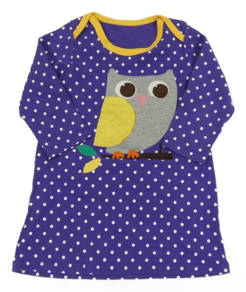 Fialové puntíkované šaty se sovou
