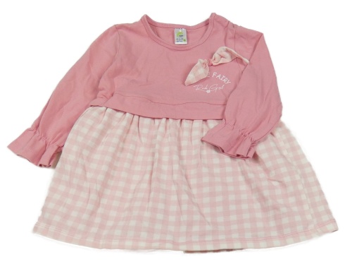 Růžovo-bílé šaty s mašlí a kostkovanou sukní