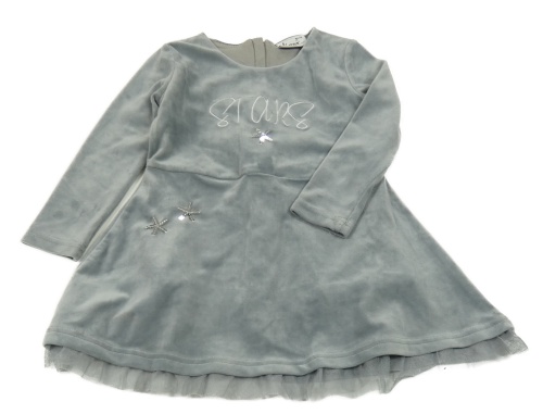 Šedé plyšové šaty s nápisem a flitry