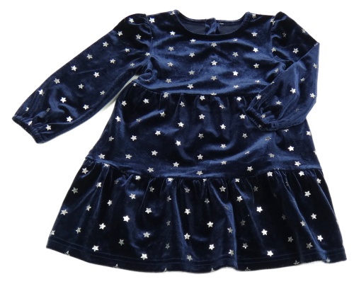 Tmavomodré sametové šaty se zlatými hvězdičkami St. Bernard