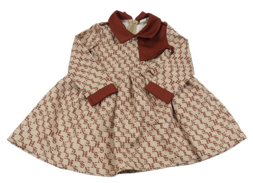 Světlehnědo-mahagonové šaty s písmenky a límečkem