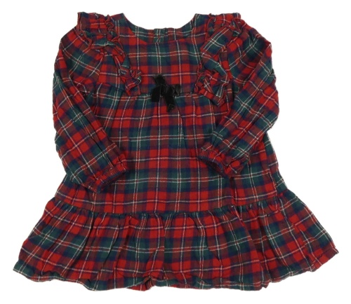 Červeno-tmavomodro/zelené kostkované šaty s mašlí a volánky Matalan