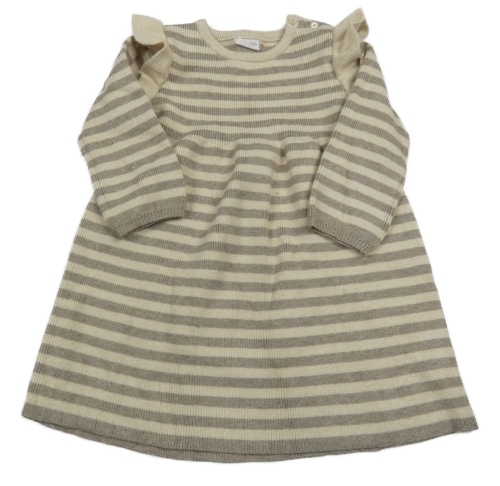 Béžovo-hnědé pruhované žebrované svetrové šaty s volánky F&F