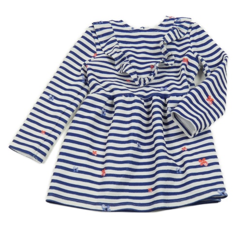 Námořnicky modro-bílé pruhované vzorované šaty s květy a volánkem St. Bernard