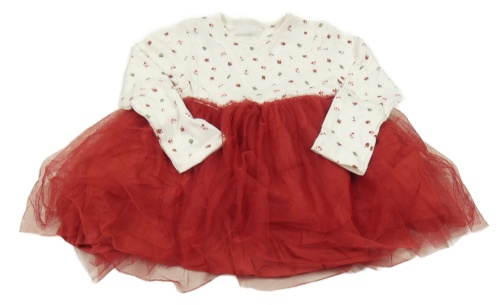 Smetanovo-vínové bavlněno/tylové šaty s ptáčky a květy Dunnes